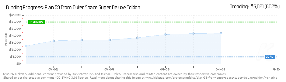Hi everyone Big thank you to everyone who has backed the project to date. Our first stretch goal is at the 4k mark: DIGITAL WALLPAPERS for all! All Backers will receive a set of (3) Digital Wallpapers Featuring the Cover Art from Plan 59! Spread the... (Read More)