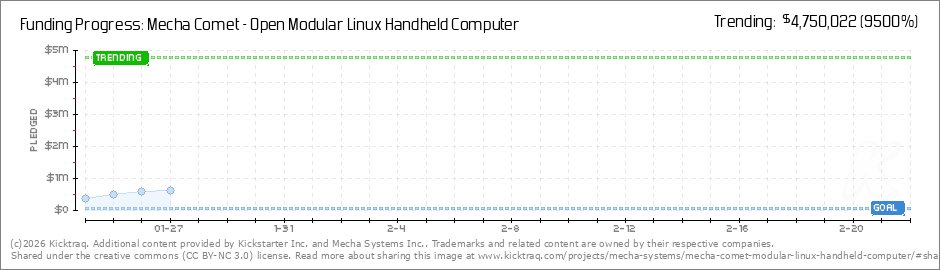 Help your backers reach your daily goals and help others see how you're doing. It's easy, with Kicktraq Mini.Here are a few quick snippits of code you can use to embed your personalized widget on your website, in your blog, and even on your favorite forum.