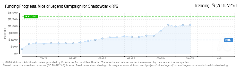 Hi everyone, Mice of Legend: Shadowdark Edition has been approved by Kickstarter, and we’re set to launch on Tuesday, March 10th. I’m holding the launch until after Emerald City Comic Con this week since I’ll be exhibiting. If you’re in... (Read More)