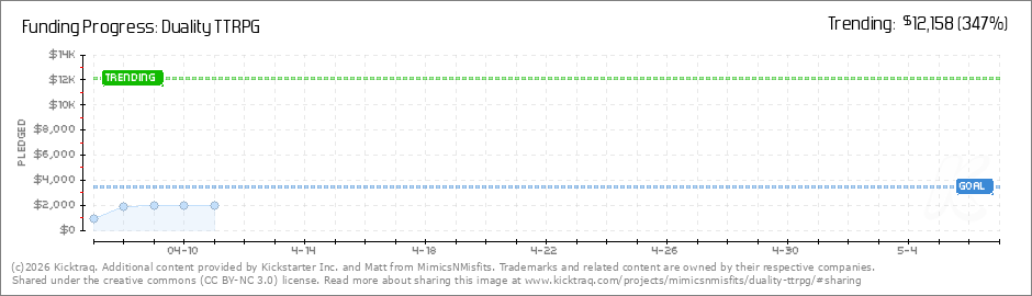 Help your backers reach your daily goals and help others see how you're doing. It's easy, with Kicktraq Mini.Here are a few quick snippits of code you can use to embed your personalized widget on your website, in your blog, and even on your favorite forum.