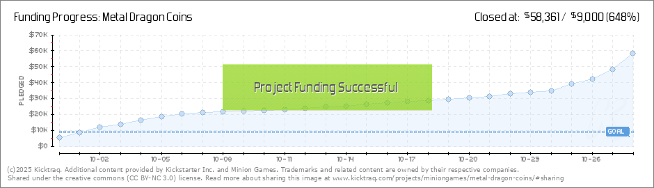 Woot! We are funded. Thank you all for your support. We can still use your help spreading the word to help reach our stretch goals. It's our plan to make all 8 coins if at all possible - this is why the goal $ amounts for those have been left... (Read More)