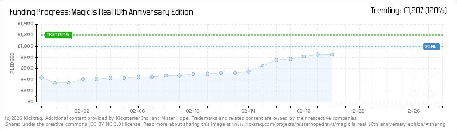Help your backers reach your daily goals and help others see how you're doing. It's easy, with Kicktraq Mini.Here are a few quick snippits of code you can use to embed your personalized widget on your website, in your blog, and even on your favorite forum.