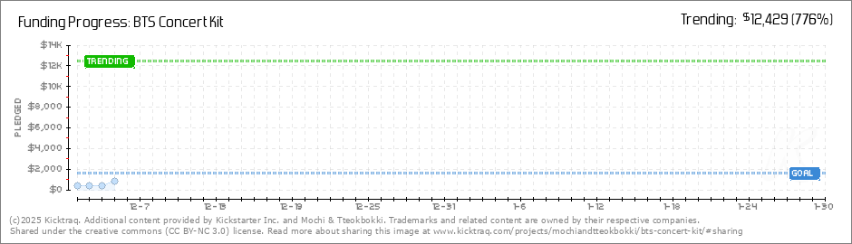 Help your backers reach your daily goals and help others see how you're doing. It's easy, with Kicktraq Mini.Here are a few quick snippits of code you can use to embed your personalized widget on your website, in your blog, and even on your favorite forum.
