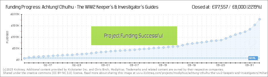 The British team that introduced the world to the WW2 roleplaying gameworld Achtung! Cthulhu have unleashed the Dark Legion again with over £50,000 ($80,000) of funding and 450% of their target in just over 1 week (with 4 weeks to go). (Read More)