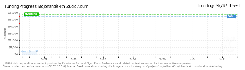 Help your backers reach your daily goals and help others see how you're doing. It's easy, with Kicktraq Mini.Here are a few quick snippits of code you can use to embed your personalized widget on your website, in your blog, and even on your favorite forum.