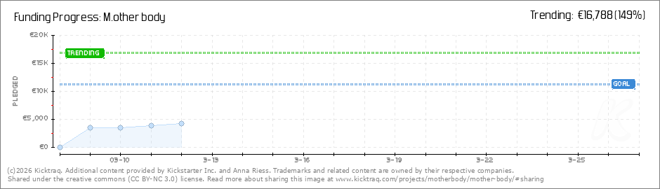 Help your backers reach your daily goals and help others see how you're doing. It's easy, with Kicktraq Mini.Here are a few quick snippits of code you can use to embed your personalized widget on your website, in your blog, and even on your favorite forum.