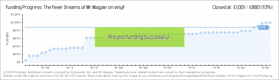 Help your backers reach your daily goals and help others see how you're doing. It's easy, with Kicktraq Mini.Here are a few quick snippits of code you can use to embed your personalized widget on your website, in your blog, and even on your favorite forum.