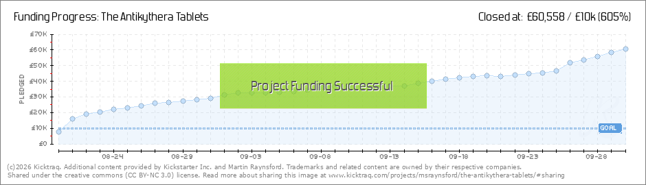 The Antikythera Tablets are fully funded, campaign finished and what a fantastic response it has been. I had optimistically hoped I would sell 100 puzzle boxes but now I need to make 300 puzzle boxes and I still really can't believe it. Without... (Read More)