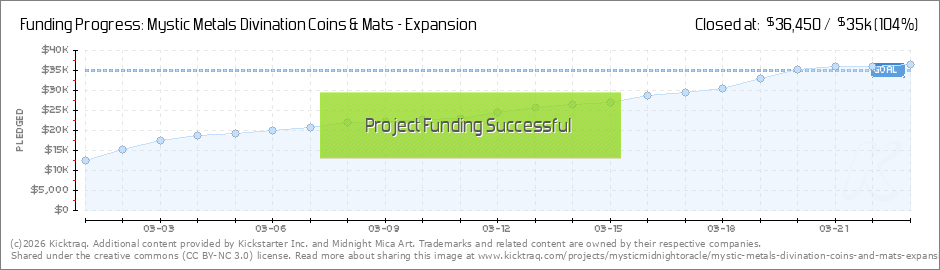 Hello everyone! Thank you so much for supporting Mystic Metals, we had a wonderful start to the campaign. New Add-Ons: Per backer request I have added the Yes/No Coin $1 and Set of 3 Acrylic Coin Stands $1. I was thinking about adding a Reading... (Read More)