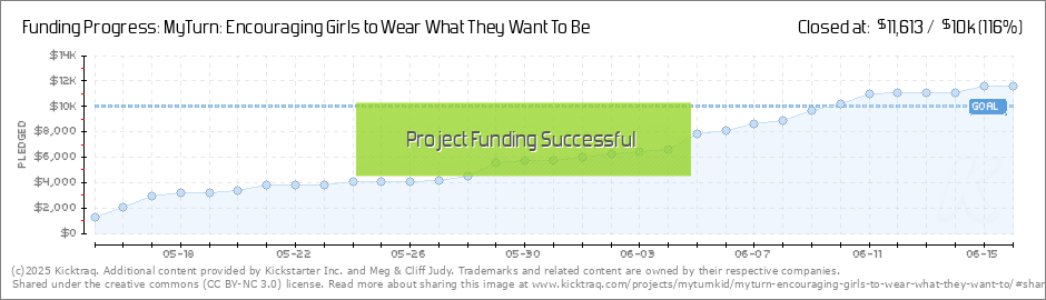 Wow! What an incredible first week. Thank you SO MUCH for showing your early support for MyTurn and our vision of encouraging girls to "wear what they want to be!" We're pushing to get to 50% funded before Memorial Day Weekend and it would be a HUGE... (Read More)
