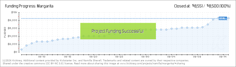 Help your backers reach your daily goals and help others see how you're doing. It's easy, with Kicktraq Mini.Here are a few quick snippits of code you can use to embed your personalized widget on your website, in your blog, and even on your favorite forum.