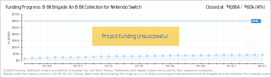 Nami Tentou has officially launched a Kickstarter campaign for 8-Bit Brigade, a collection of 8-bit style indie games for the Nintendo Switch. The collection would include 10 total games designed as throwbacks to the NES era. The campaign’s goal is for $60,000, and includes the possibility for multiple stretch goals. (Read More)
