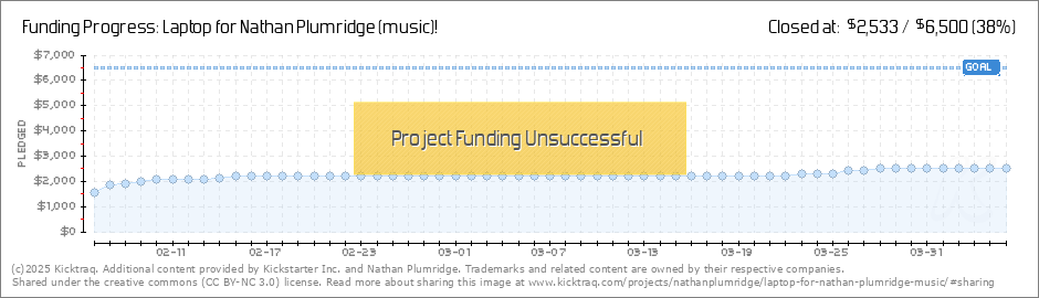 Help your backers reach your daily goals and help others see how you're doing. It's easy, with Kicktraq Mini.Here are a few quick snippits of code you can use to embed your personalized widget on your website, in your blog, and even on your favorite forum.