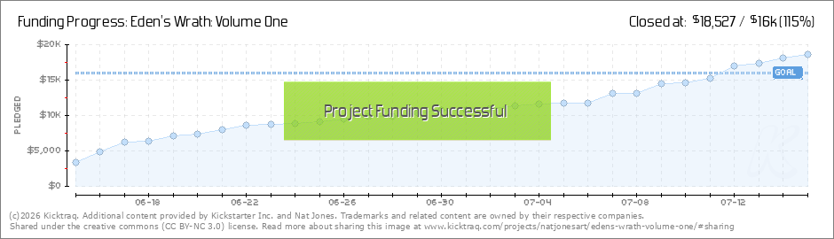 Great news! Eden's Wrath: Volume One is FUNDED! Thank you all SO much! We can't wait to get this book out to all of you! Also, we are really close to our first stretch goal! Thank you!!! Nat & Cory (Read More)