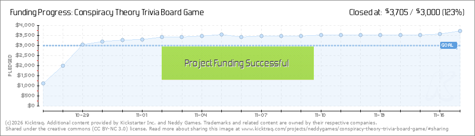 Thanks to our awesome Day One backers, the Conspiracy Theory Trivia Board Game made it onto Kicktraq's Hottest Projects List. http://www.kicktraq.com/hotlist/ (Read More)