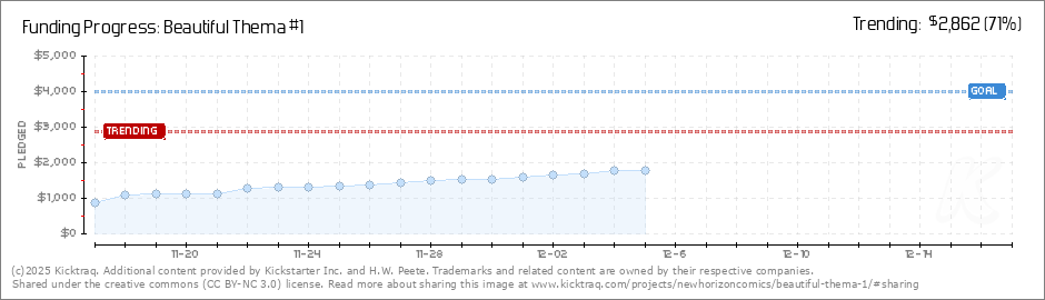 Help your backers reach your daily goals and help others see how you're doing. It's easy, with Kicktraq Mini.Here are a few quick snippits of code you can use to embed your personalized widget on your website, in your blog, and even on your favorite forum.