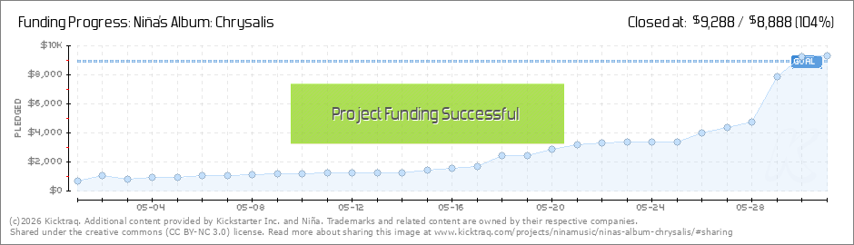 Help your backers reach your daily goals and help others see how you're doing. It's easy, with Kicktraq Mini.Here are a few quick snippits of code you can use to embed your personalized widget on your website, in your blog, and even on your favorite forum.