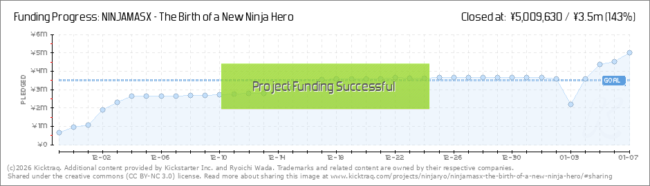 We have achieved 20% in the first 2 hours, thank you so much for everybody's support Please join the gang and help us bring NINJAMASX to life!! 日本から支援してくださっているみなさま、本当にありがとうございます (Read More)