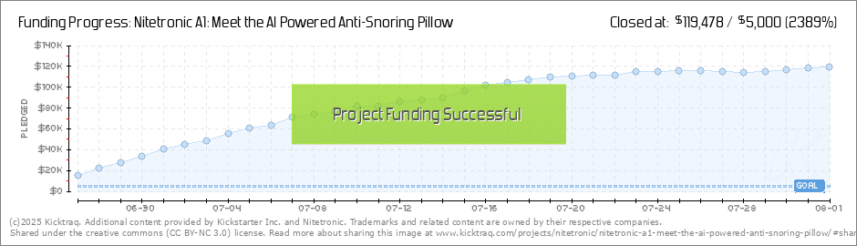 Dear backer, We have some fascinating news to share, thanks to the incredible support of people like you! Our Nitetronic A1 AI Anti-Snoring Pillow campaign has officially reached an astonishing USD 100,000 in funding in just 20 days! This remarkable... (Read More)