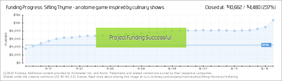 WOWZA, THANK YOU! We appreciate all of you so much in helping us hit the game's funding goal in less than 48 hours!! ✨ We can't wait to share more of this slice-of-life culinary journey with you all as we work together to bring the Windows/Mac... (Read More)