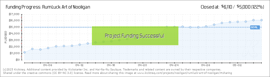 Funded! RumLuck has been fully funded as of today! Thank you all so much for your support, this would would not be possible without it. I have spoke with the printer about some cool upgrades to the book for stretch-goals as well as some... (Read More)