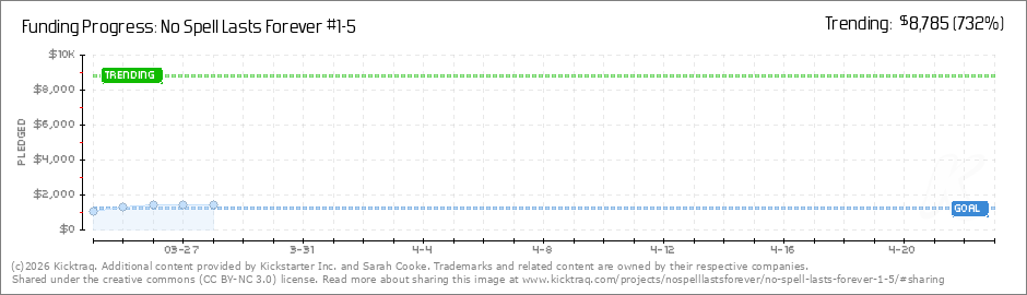 Hey Everyone, Exciting news! No Spell Lasts Forever #5 has reached its funding goal! In fact, we've surpassed it by almost $100! Thank you all so, so much for supporting the book, it means a lot to me. We've also reached both our 50-Backer and... (Read More)