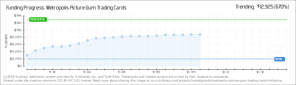 Stretch goal #2 is officially unlocked! Everyone who has pledged for the base set on up, will now receive a special stick of Metropolis gum. Stretch goal #3 - Poster Card #1 is my personal favorite of all the stretch goals. That is one I really... (Read More)