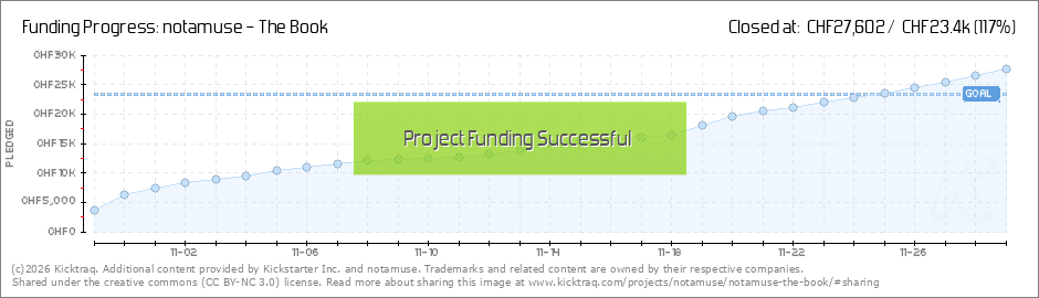 With your help we reached the 100%, meaning notamuse – The Book is going to be real! A very, very big thank you to all supporters! With the help of our publishing house niggli, we will start the production process soon, so the books will be in... (Read More)