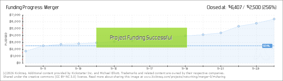 Well, heck. I post that last update about how we're almost at our second stretch goal a few hours ago and y'all just crush it huh? Not only will MERGER be getting slick custom cover art, but it will now be in glorious horrific colour! One last... (Read More)