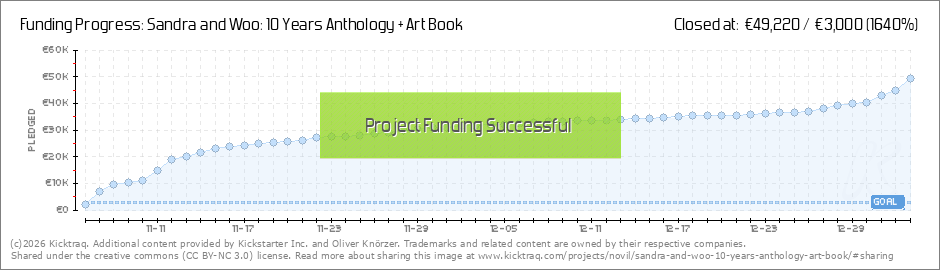 The Sandra & Woo anthology features comics, author commentary and sketches on 550 pages. The art book features colored illustrations.