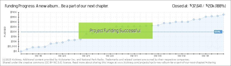 THANK YOU ALL!!! In only one week you got us past our initial goal and ensured that this album will be funded! We'll continue to push over the next 3 weeks to try and reach some stretch goals (announcing soon!) with some new rewards coming soon. ... (Read More)