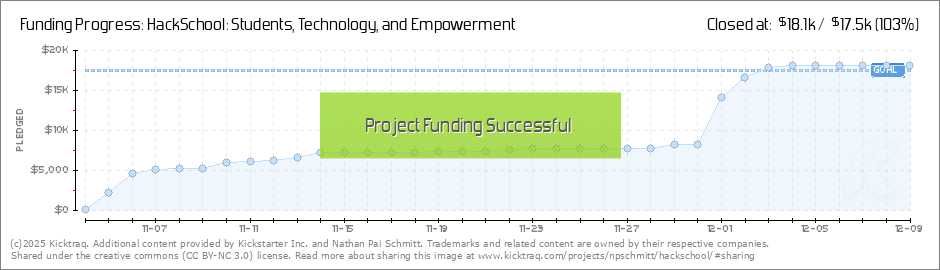 Wow. Just wow. We just reached our goal, and the kids couldn't be more excited! The incredible outpouring of community support has been amazing, especially over the past 48 hours. As a founding HackSchool supporter, you have played a major role... (Read More)