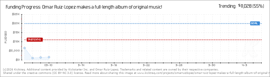 Help your backers reach your daily goals and help others see how you're doing. It's easy, with Kicktraq Mini.Here are a few quick snippits of code you can use to embed your personalized widget on your website, in your blog, and even on your favorite forum.