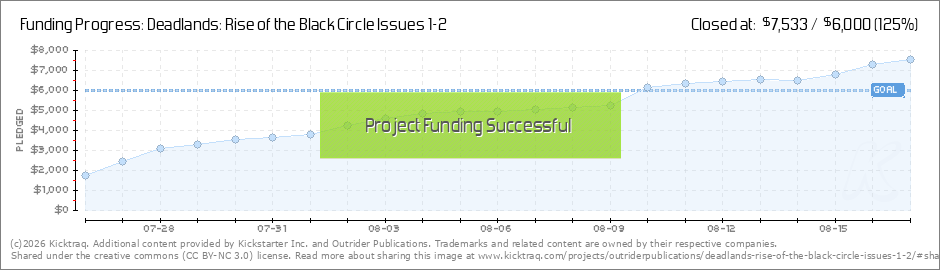As Outrider’s Kickstarter campaign for Deadlands: Rise of the Black Circle Issues 1-2 enters its last week we are closing in on our goal and announcing our first stretch goal! Written by Deadlands creator Shane Lacy Hensley with stunning art by... (Read More)