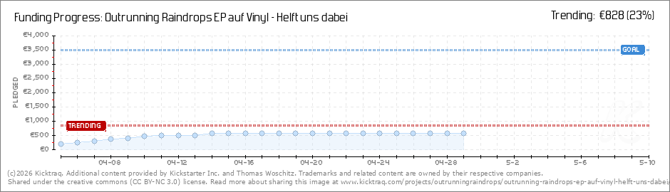 Help your backers reach your daily goals and help others see how you're doing. It's easy, with Kicktraq Mini.Here are a few quick snippits of code you can use to embed your personalized widget on your website, in your blog, and even on your favorite forum.