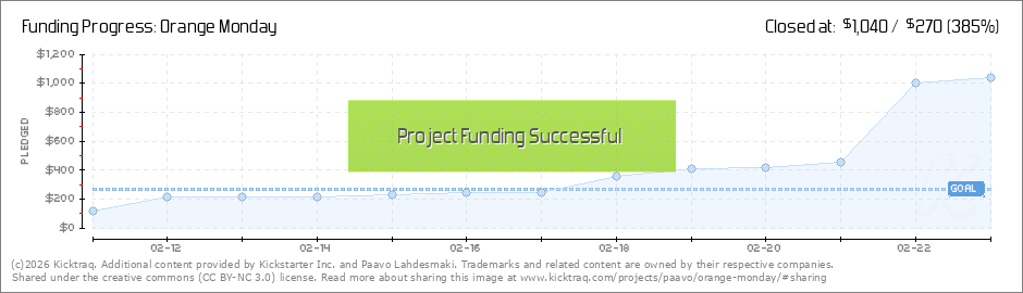 Help your backers reach your daily goals and help others see how you're doing. It's easy, with Kicktraq Mini.Here are a few quick snippits of code you can use to embed your personalized widget on your website, in your blog, and even on your favorite forum.