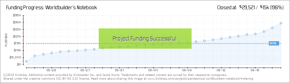 The Worldbuilder's Notebook has funded! Thank you so much for believing in this project, and thanks so much for sharing the project around online! This wouldn't have been possible without your help. A Stretch Goal Update May turned out to be a great... (Read More)