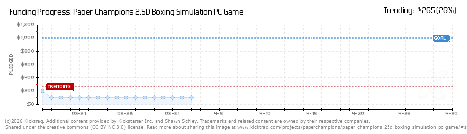 Help your backers reach your daily goals and help others see how you're doing. It's easy, with Kicktraq Mini.Here are a few quick snippits of code you can use to embed your personalized widget on your website, in your blog, and even on your favorite forum.