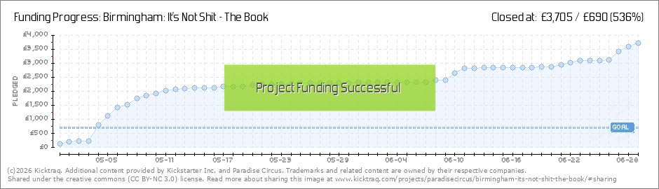 Thank you! When we thought up the Birmingham: It's Not Shit book Kickstarter we we very hopeful of hitting the target, but to see that target smashed on launch day is very humbling. As early backers we want you to be the first to know what we... (Read More)