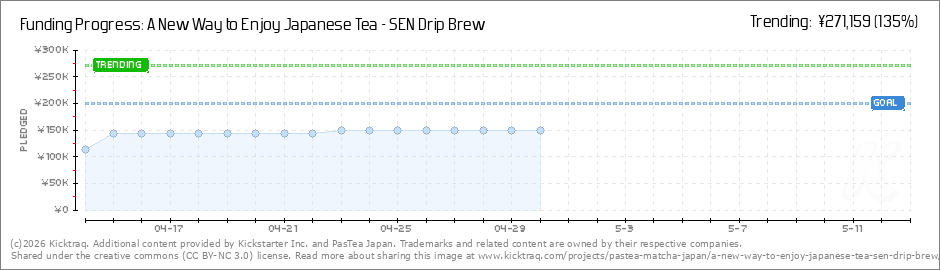 Hi guys!SEN launched just 13 hours ago, and we're already at 37% funded! SEN is a drip brew green tea from Shizuoka, paired with a handcrafted bamboo cup. Just pour hot water and watch the tea slowly drip; the brewing itself is part of the... (Read More)