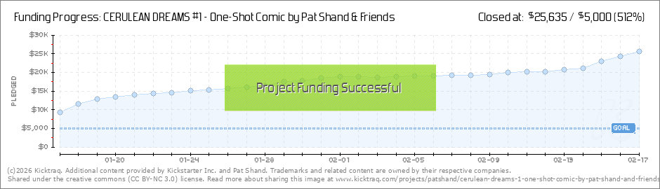 Hey Cerulean Dreams backers, Cerulean Dreams is funded! Thank you so much for another Day One fund, continuing a streak of these for the last few Team Space Between projects. Cerulean Dreams is new venture for us, as it's our first-ever single issue... (Read More)