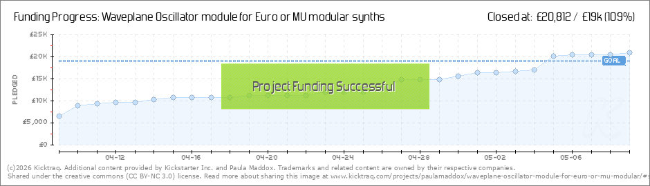 We're funded! Thank you so much to everyone who's pledged, we'll keep your posted every step of the way. please continue to share this with your friends and on social media so we can bring more modules to the world! The waveplane oscillator module... (Read More)