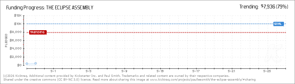 Help your backers reach your daily goals and help others see how you're doing. It's easy, with Kicktraq Mini.Here are a few quick snippits of code you can use to embed your personalized widget on your website, in your blog, and even on your favorite forum.