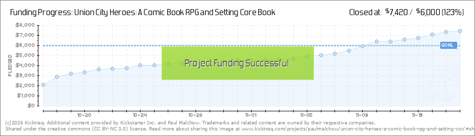 We are so proud to announce that through the generous pledges of all our supporters so far, we are over 25% Funded in less than 12 Hours! Extraordinary! Please share this with everyone you possibly can! Union City Heroes is kicking ass! (Read More)