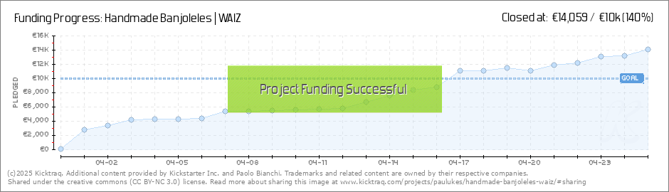Hello everyone! ---> We reached the 79% ! <--- I have important news for you: I announce the new Waiz model: it’s a short scale banjo-guitar, named SUPERNOVA. You can discover it on the campaign. There's only three SUPERNOVA available!... (Read More)