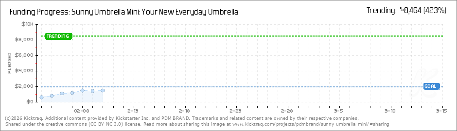 Help your backers reach your daily goals and help others see how you're doing. It's easy, with Kicktraq Mini.Here are a few quick snippits of code you can use to embed your personalized widget on your website, in your blog, and even on your favorite forum.