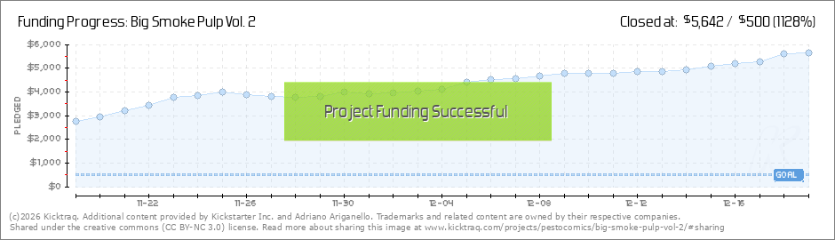 This is the End!We're in the last few hours of the campaign for Big Smoke Pulp Vol. 2! We've successfully unlocked 6 stretch goal bonus stories. I'm locking down the specific stories that will be included, but just know you'll be getting even more... (Read More)