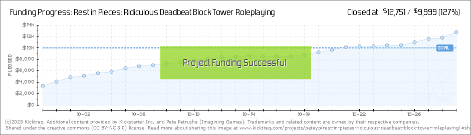 25% in the First Hour! Things are looking up! We are off to a great start! I can't thank you enough for all of your support. Please, keep sharing, keep posting, keep telling your friends! Rest in Pieces is a hilarious game that will be super... (Read More)