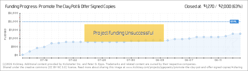 The countdown to the finish line for the Kickstarter campaign for The Clay Pot, to support my printing of promotional copies and to provide you with signed copies, illuminated poems, and other desireables has begun! We're just barely over two days... (Read More)