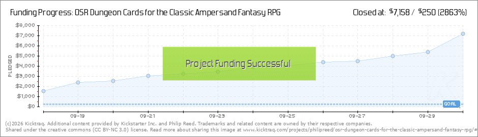 With the first day behind us, we can report that everything's going great! The first two stretch goals have been unlocked, adding two more decks to your rewards. In addition to code for OSR Dungeon Cards, you'll also receive DriveThruRPG codes for... (Read More)